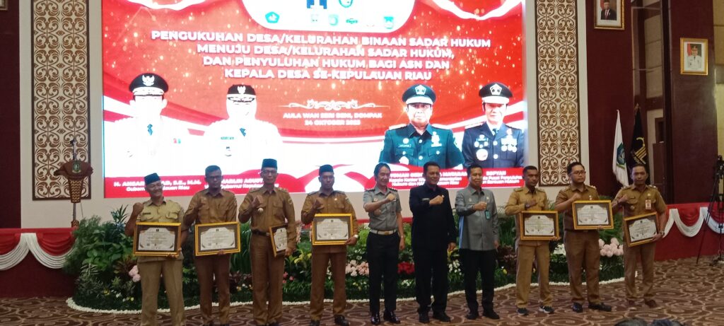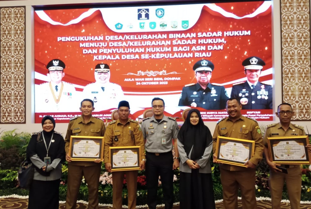 Kanwail Kemenkumham Provinsi Kepulauan Riau menggelar acara pengukuhan Desa/Kelurahan menjadi Desa binaan sadar hukum menuju Desa sadar hukum tingkat Provinsi Kepulauan Riau di Aula wan beni seri, dompak Tanjung Pinang, Selasa 24/10/2023.