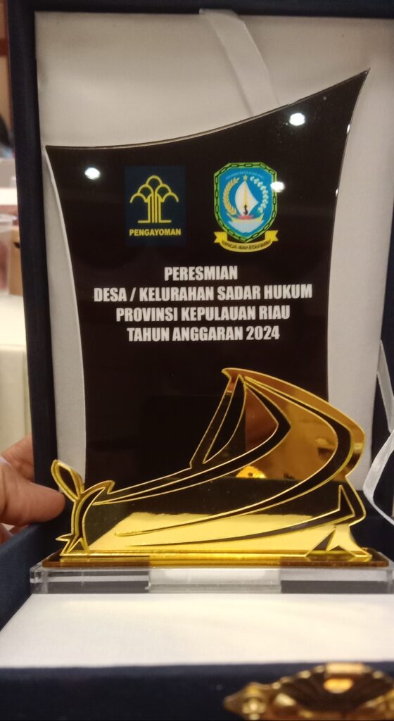 Kantor Wilayah Kementerian Hukum dan HAM (Kemenkumham) Kepulauan Riau menyelenggarakan peresmian Desa/Kelurahan sadar Hukum.
