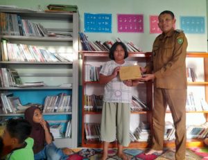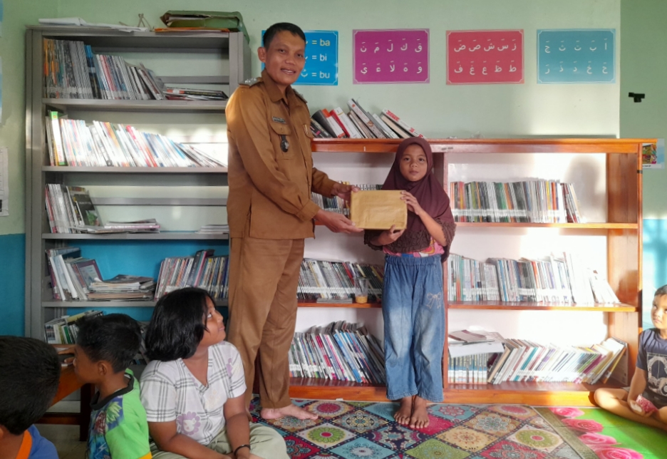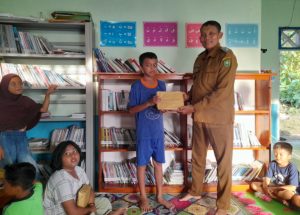 Air Lengit– Untuk memotivasi dan menarik kunjungan ke perpustakaan Desa Rona Niscala. Kepala Desa Air Lengit, Kuswanto S.IP kembali memberikan dorprize kepada 5 (lima) orang yang aktif berkunjung ke Perpustakaan.
