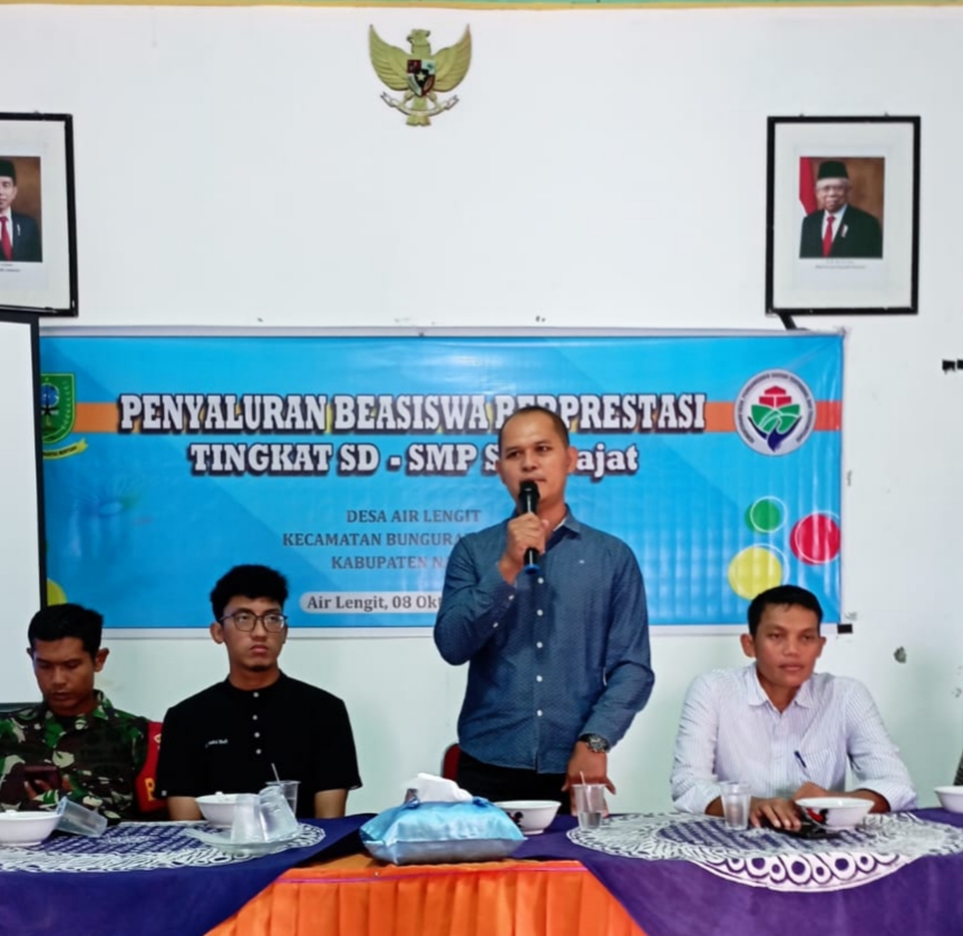 AIR LENGIT– Pemerintah Desa Air Lengit menyalurkan beasiswa berprestasi untuk tingkat SD-SLTP sederajat di aula kantor Desa Air Lengit pada 8/10/23 yang lalu. Turut hadir dalam kegiatan tersebut Camat Bunguran tengah, Babinsa Desa Air Lengit, ketua BPD Desa Air Lengit, dan Pendamping Desa.