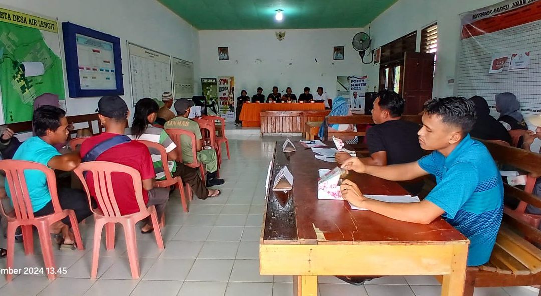 Air Lengit- Menjelang Pilkada serentak 27 November 2024 mendatang, Panitia Pemungutan suara (PPS) Desa Air Lengit melaksanakan simulasi perhitungan suara bersama kelompok penyelengara Pemungutan suara (KPPS), kegiatan dilaksanakan pada sabtu 23/11/24 sore di aula Kantor Desa Air Lengit.